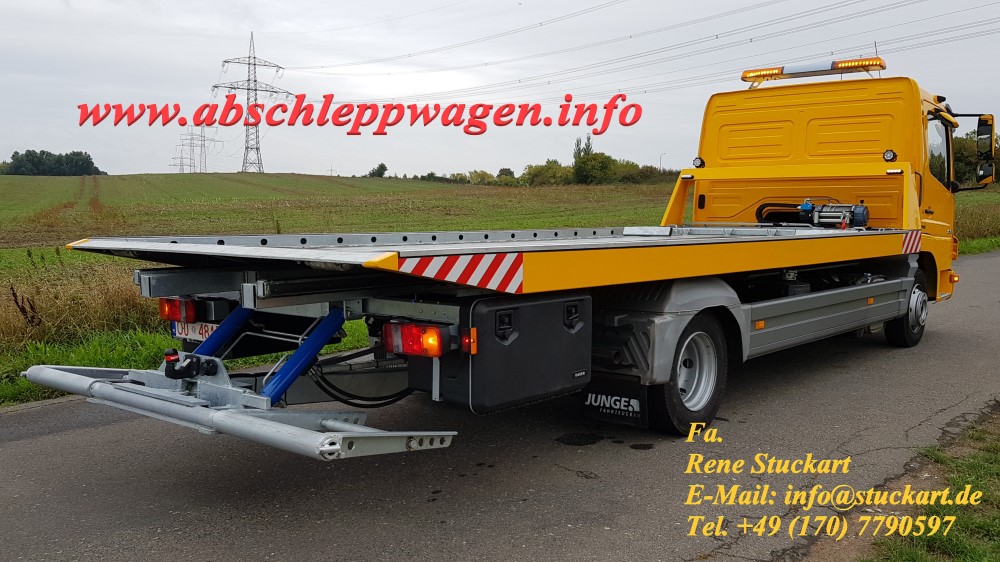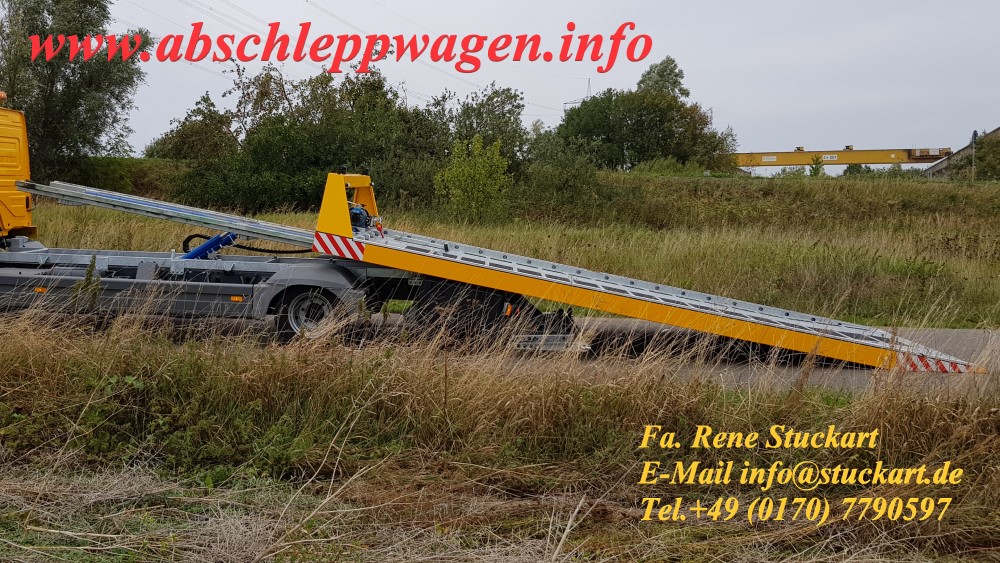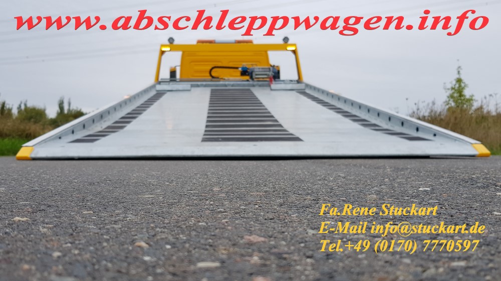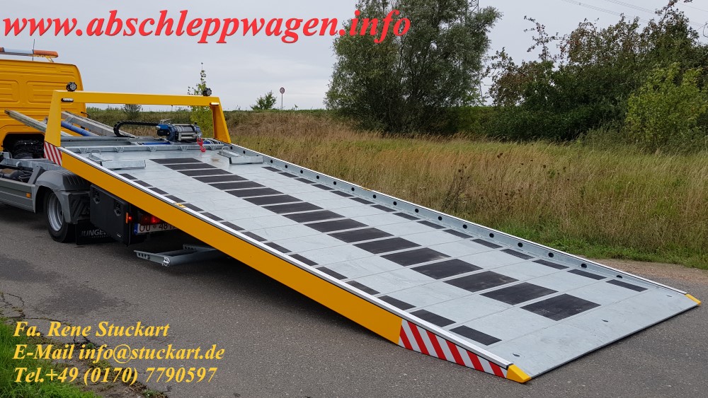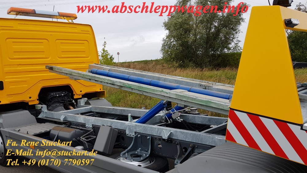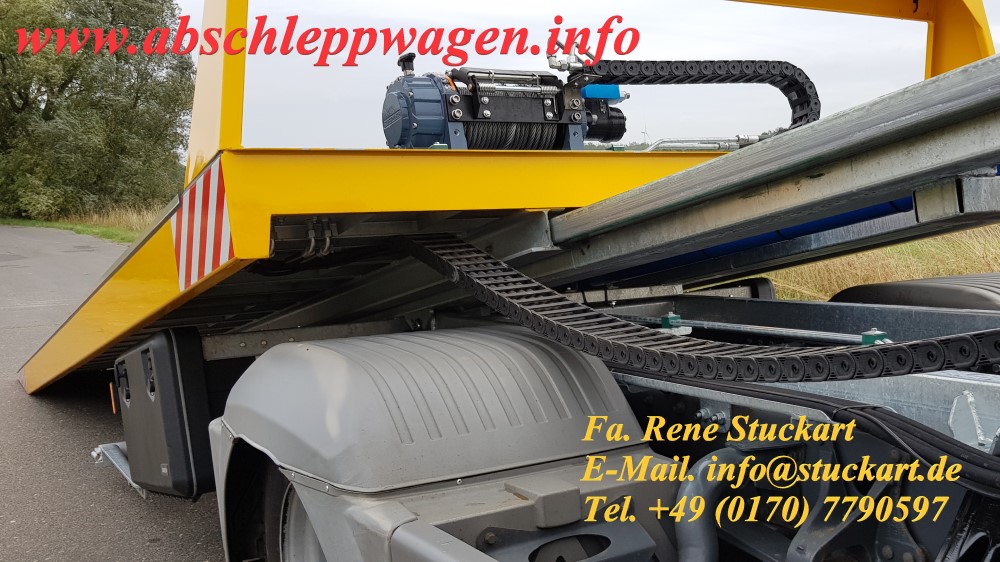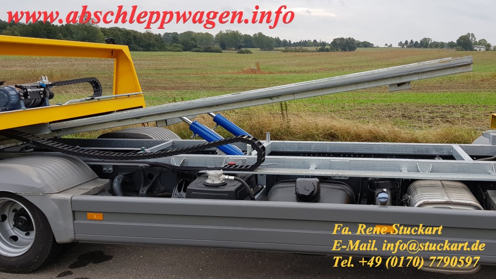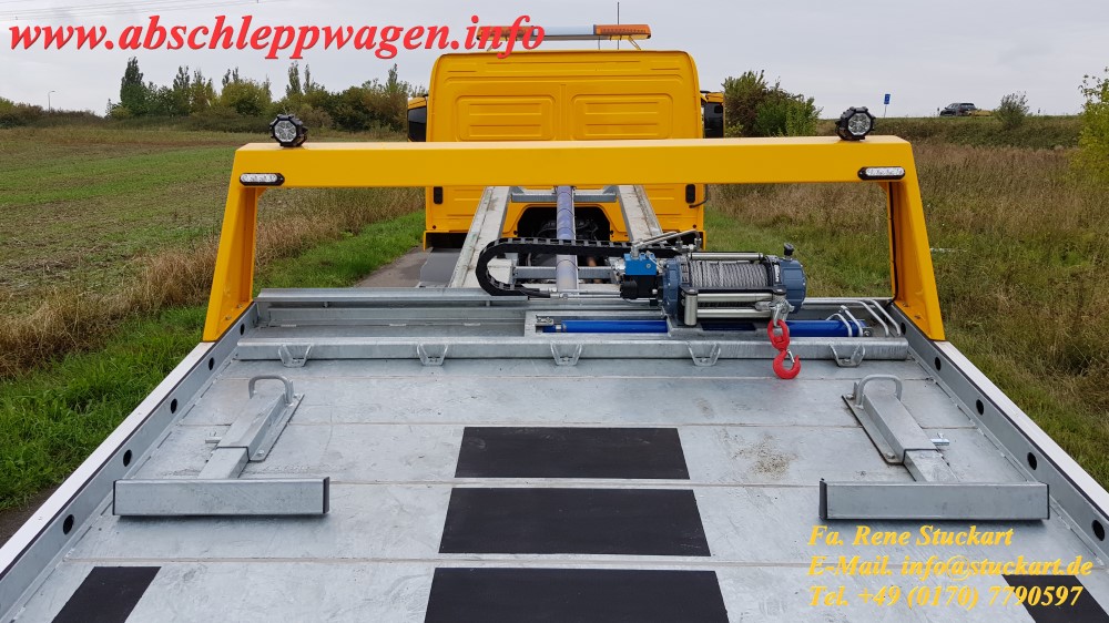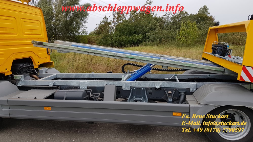 Zusatz-Ausrüstung Plateau / Special equipment plateau : | Frontbügel niedrig am Plateauanfang Zurrpunkte in den Plateauborden Alutrittkante auf den Plateauborden Plateau besandet nach Wunsch / Teilbesandung oder vollständige Fläche 2 Radstopper Ablaufrollen unter dem Plateauende Plateau am Ende angeschrägt um einen besseren Auffahrwinkel zu erzielen 1 x abschließbare Steuerkiste (auf der Beifahrerseite / b.: 600 mm) 1 x abschließbare Werkzeugkiste (auf der Fahrerseite / b.: 600 mm) 1 x zusätzliche Werkzeugkiste zwischen den Achsen (b. 1.000 mm) 2 Mülleimer mit Haltern 1 x Schaufel und 1 x Besen mit Haltern | |